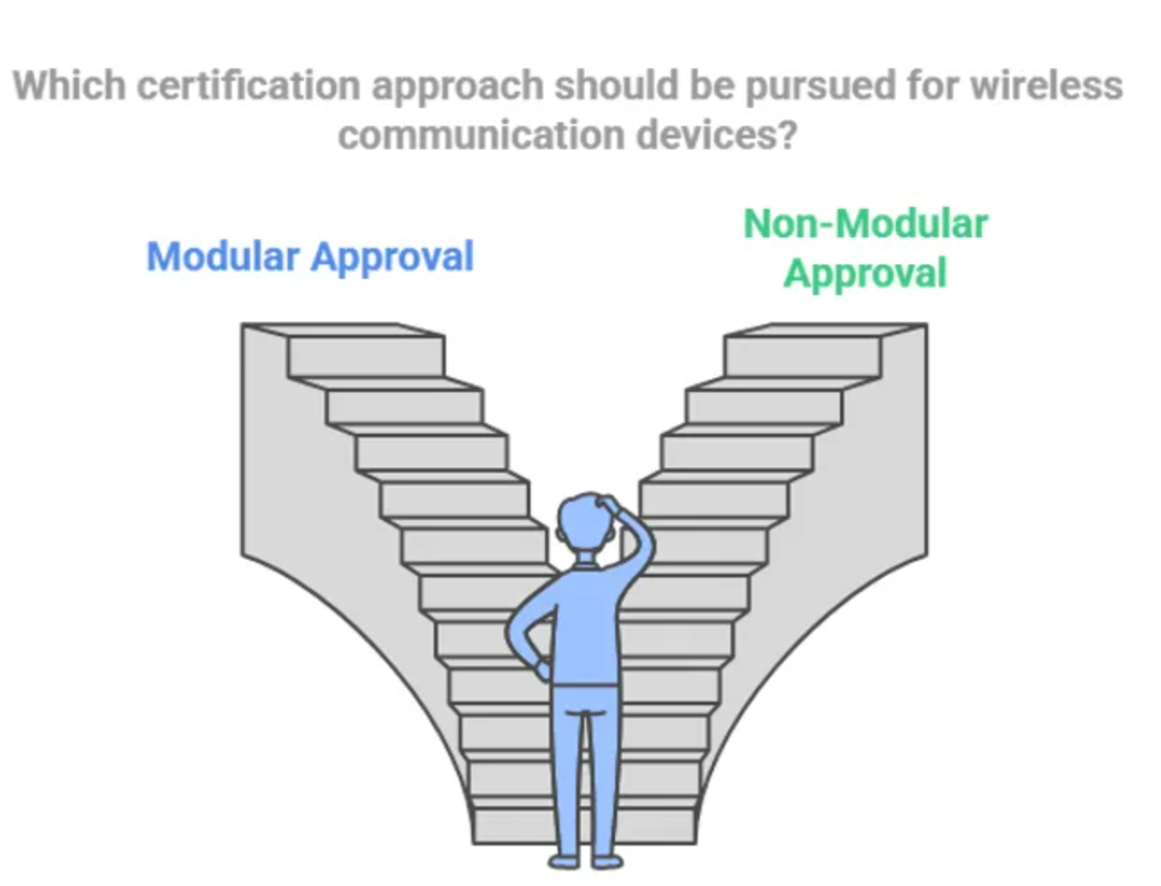 在向任何新市场推出具有无线传输功能的新产品之前,制造商必须获得无线监管机构的认证。此项认证可确保这些产品符合所需的可靠性标准。这些认证就像产品的护照,使产品能够合法进入市场并进口或出口到指定国家。无线通讯设备的认证和监管流程有两种方式:使用模块安规认证(Modular Approval)和无使用模块安规认证(Non-Modular Approval)。